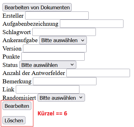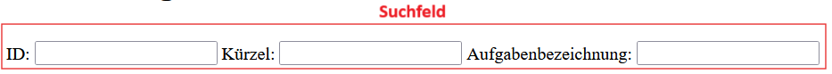 In den Suchfeldern können über die ID, dem Kürzel oder der Aufgabenbezeichnung einzelnen Aufgaben bzw. Aufgabengruppen gesucht werden.